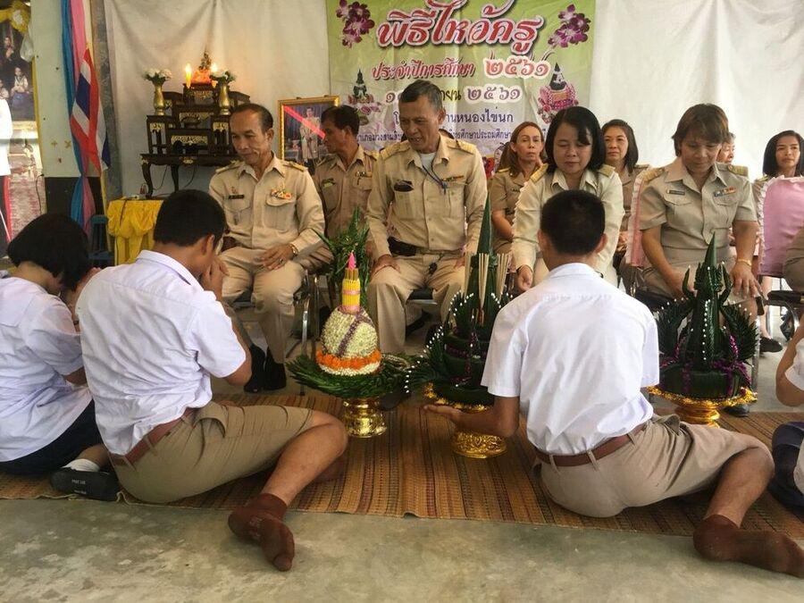 น้อมวันทา บูชาครู วันพฤหัสบดีที่ 14 มิถุนายน 2561 ณ หอประชุมโรงเรียนบ้านหนองไข่นก S:0