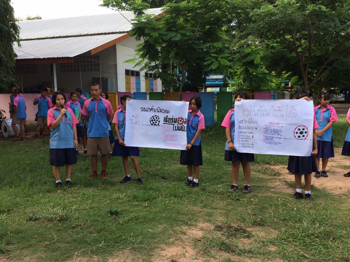 ฝ่ายประชาสัมพันธ์คณะกรรมการสภานักเรียนโรงเรียนบ้านหนองไข่นก เชิญชวนพี่น้อง ชาวหนองไข่นก รณรงค์ ไม่เล่นพนันฟุตบอล ในช่วงการแข่งขันฟุตบอลโลก 2018 ที่ประเทศรัสเซีย